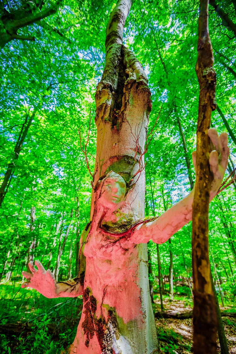 A group of beings frozen in time, transmuted into trees during some cataclysmic event - like the victims of Pompeii. The Chlorosapiens consist of 6 life size cement figures permanently installed along a pathway during Lakewood Elements Festival in Pennsylvania.